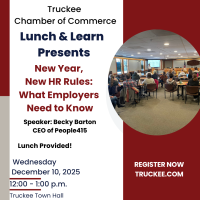 Join us for our final mixer of the year—a special joint celebration with Visit Truckee-Tahoe, the Truckee Downtown Merchants Association, Tahoe City Downtown Association, Kings Beach District and the North Tahoe Chamber! Wild Pine Kitchen, Village at Northstar