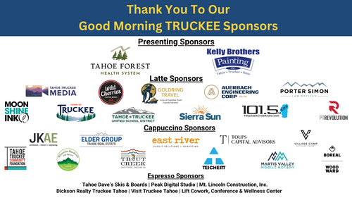 Join us for a timely conversation featuring updates from the Town of Truckee and regional partners about upcoming local projects shaping our community. Hear perspectives from Reno-Tahoe International Airport and learn more about what’s ahead this season, along with insights into how these efforts connect to Truckee’s future. This is a great opportunity to stay informed, ask questions, and be part of the conversation.