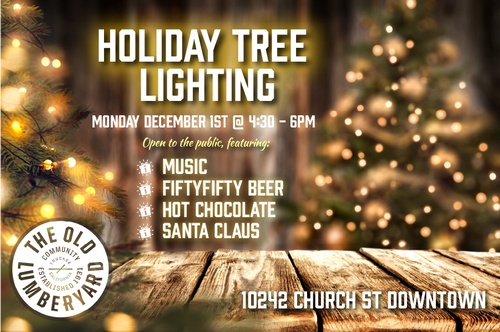 Join us Monday December 1st at 4:30 pm in the courtyard of downtown Truckee's newest retail, restaurant, and commercial plaza - The Old Lumberyard at the former location of Truckee Tahoe Lumber Co. at 10242 Church Street.